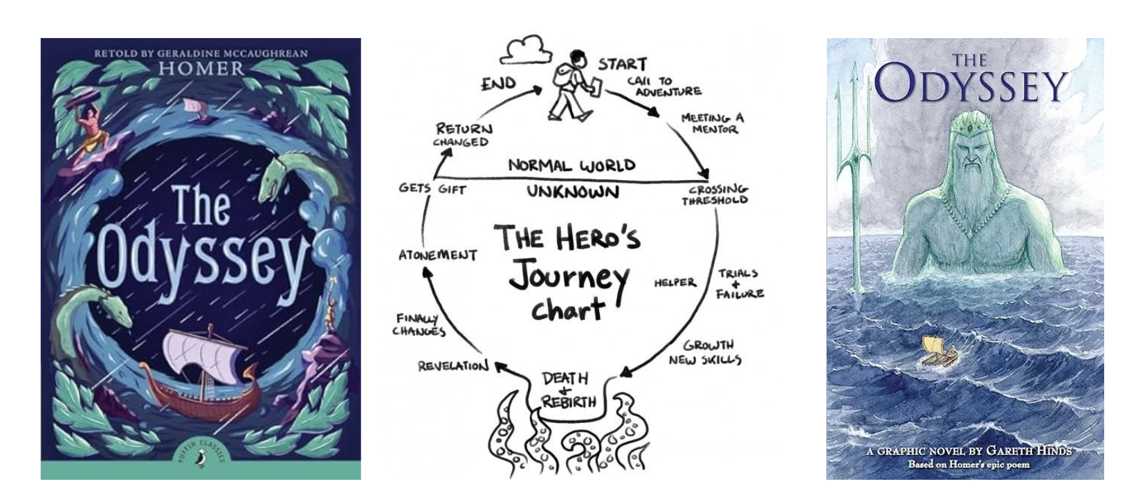 A favorite unit in Sixth Grade Humanities is “The Hero’s Journey.” Students read an abridged version of Homer’s Odyssey and also explore a graphic novel that retells the epic story in 250 paintings. They discover the structure of a heroic tale that starts in the ordinary world, moving into the unknown, enduring trials and failures, to a triumphant return.